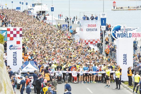5月5日,选手在克罗地亚扎达尔举行的生命之翼长跑活动中等待出发。