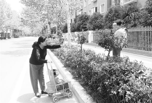 5月9日中午,一些市民在市城乡一体化示范区府汇街上赏花。据介绍,3月以来,根据道路提升需求,市城乡一体化示范区对居住密集区的中原路、庆丰路、府汇街、府苑街进行了升级改造,种植各类月季花近5000株。记者 窦娜 摄