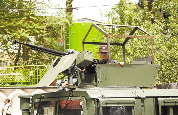 5月8日,在阿富汗首都喀布尔,阿富汗安全部队士兵在发生袭击的地点附近警戒。阿富汗政府官员8日说,塔利班武装分子当天在阿首都喀布尔的一个国际援助机构大楼外发动自杀式汽车炸弹袭击,导致至少1名袭击者死亡、9人受伤。新华社发