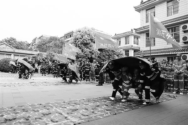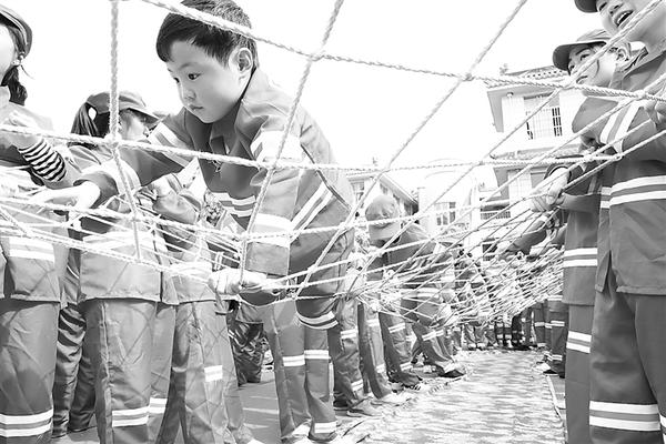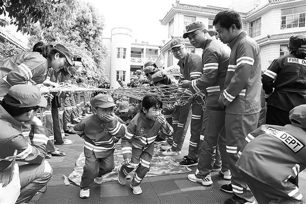 记者在现场看到,数十名老师分工明确,变身为“消防教官”;千余名孩子队列整齐,成为“小小消防员”;家长则相伴左右,担任“大大消防员”的角色。演练从“火灾”现场撤离拉开序幕,消防健身体操、攀爬过软桥、打滚自救、灭火实验依次进行,还有儿童防走失演练“小蝌蚪找妈妈”。“小蝌蚪找妈妈”是让孩子们在无人引导的情况下,从所有穿着相同、戴着帽子和眼罩的家长中找爸爸妈妈。