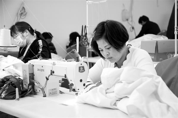 5月13日,在项城市高寺镇张老家村的松鑫服装厂内,100多台电动缝纫机整齐地排列着,工人正在赶制订单标志服。该企业是张老家村的第二个扶贫基地,自2017年4月建成投产以来,已吸纳当地100多名留守妇女就业。