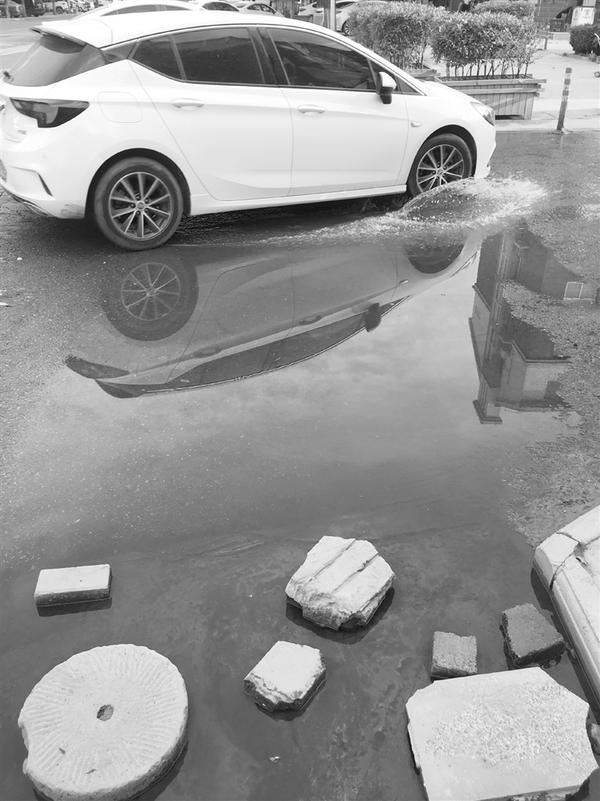 记者在采访中发现,不仅是阳光澜岸小区门前有大量污水,在建材路东侧同样存在大量污水(如图2),而且还有污水不断从下水道中冒出,这些污水就在大路上自由流淌。“太臭了,没人管吗?”几位市民边走边议论。