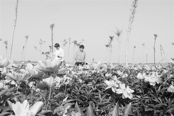 5月11日,游人在商水县郝岗镇西洄村田间欣赏盛开的鲜花。近年来,商水县郝岗镇围绕美丽乡村建设做文章,加大村容村貌整治力度,大力发展牡丹、绿化树种植等产业扶贫项目,助推乡村振兴。