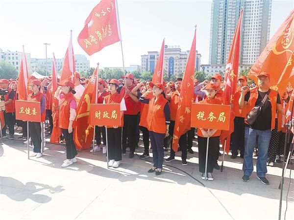 本报讯(记者 王晨 文/图)“我志愿成为一名光荣的‘创卫’志愿者,从我做起,做美丽周口的守护者,做文明行为的传播者!”5月22日,在中心城区五一文化广场上,来自全市的近4000名志愿者在全市志愿者服务创建国家卫生城市攻坚誓师大会发出同心“创卫”的铮铮誓言(如图)。