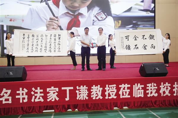 最后,该校董事长刘永文宣布聘请丁谦为该校名誉校长。市教体局党组书记张建梁为丁谦颁发聘书。丁谦将自己的书法作品及书籍赠送给该校。