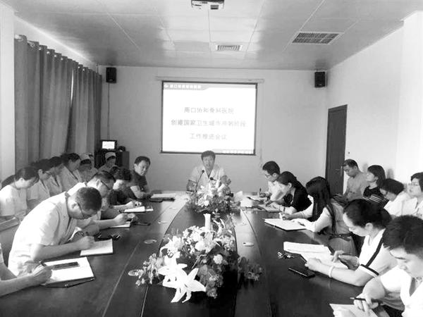 本报讯 (记者 史书杰 文/图) 为扎实推进“创卫”工作,确保圆满完成“创卫”各项工作任务,5月28日下午,周口协和骨科医院召开创建国家卫生城市冲刺阶段工作推进会(如图)。