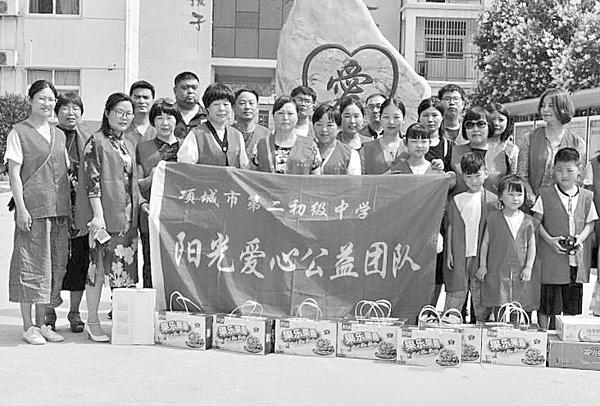 6月15日是星期六,项城市第二初级中学阳光爱心公益团队组织学校党员志愿者和师生代表来到周口市社会福利中心,看望慰问那里的孩子们。他们给孩子们带去了饼干、牛奶等,并和孩子们一起唱歌、跳舞、做游戏,陪伴孩子们度过了一个快乐而有意义的周末。