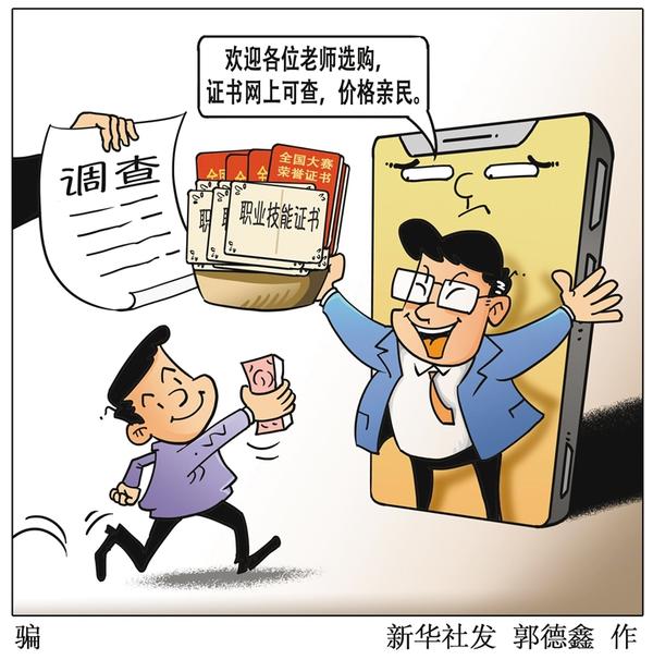 无需考试、培训,花上千元即可买到各类“中”字头的“全国大赛”奖状、职业技能证书。“新华视点”记者近日发现,有人在网络大量销售证书、奖状,且多涉及一家单位。针对这一现象,一些地方公安部门已经介入调查。新华社发 郭德鑫 作