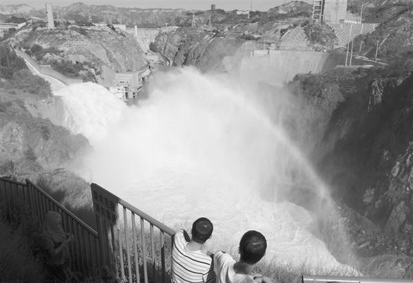 据介绍,受近日持续降雨影响,刘家峡水库开启溢洪道闸门,加大下泄水量,为黄河平稳度汛提供有力保障。新华社发