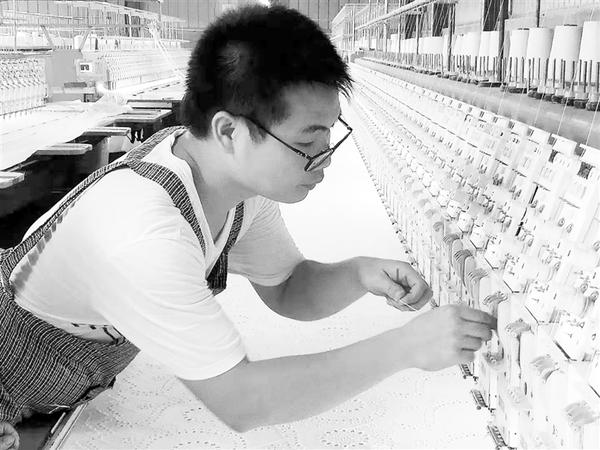 7月19日,周口雅丝奇纺织品有限公司技工正在刺绣车间工作。