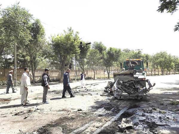 7月19日,在阿富汗首都喀布尔,安全人员检查爆炸现场。