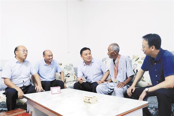 7月31日,周口市退役军人事务局局长陈宏在太康县委常委、副县长韩维俊,县退役军人事务局局长潘布道等的陪同下,到独塘乡杨庄行政村,看望慰问“张富清式”的老革命刘国勋。图为慰问现场。