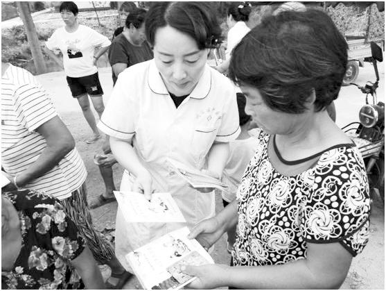 近日,川汇区中医院健康扶贫医疗服务队到城南办事处西李庄举办义诊和健康巡讲活动,免费为群众测量血压、听诊,并发放健康教育资料,受到群众的一致好评。 记者 史书杰 摄