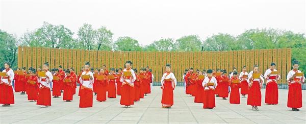 “天地玄黄,宇宙洪荒。日月盈昃,辰宿列张……”近日,在沈丘县中华槐园千字文广场,百余名小学生齐诵《千字文》。为庆祝新中国成立70周年,沈丘县组织开展齐诵《千字文》、传承国学经典活动,在传统文化教育中进一步增强小学生的民族自信心和自豪感。黄海涛 摄