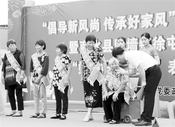 8月27日,商水县举办“倡导新风尚、传承好家风”专题文艺演出暨固墙镇徐屯村“好媳妇 好婆婆”表彰大会,对村民代表评选出的8名“好媳妇”和5名“好婆婆”进行隆重表彰,用活生生的典型人物和身边事例教育、感召每一名村民,引领村民以家风促民风,助推美丽乡村建设。记者 付永奇 通讯员 吕冰荣 摄