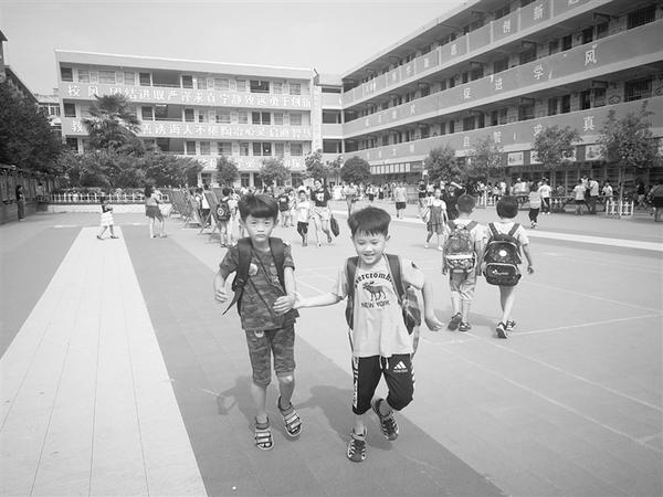 昨日,沈丘县回民小学二年级学生辛旭和同学在校园里玩耍。近日,我市各学校陆续开学,老师和学生们精神饱满,开始了新学期生活。