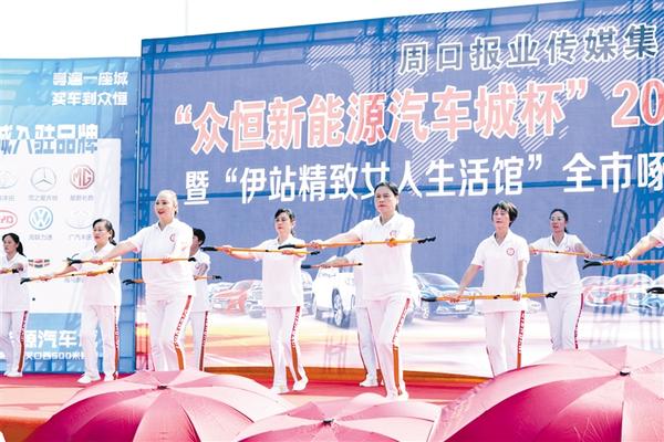 本报讯 (记者 王凯/文 梁照增/图) 9月6日上午,由周口报业传媒集团主办的“众恒新能源汽车城杯”2019周口报业秋季大型车展暨“伊站精致女人生活馆 ”全市啄木鸟公益广场舞大赛在市体育中心开幕。本次秋季车展涵盖40多个热销品牌、300余款热销车型。周口农商银行首次进驻车展设立移动信贷服务站,现场为市民和参展商办理信贷业务。