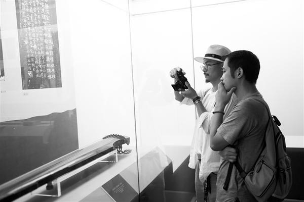 9月6日,观众在浙江省博物馆参观一张唐琴。