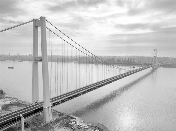 武汉杨泗港长江大桥(9月25日无人机拍摄)。10月8日,长江上首座双层公路大桥——武汉杨泗港长江大桥正式投入使用。杨泗港长江大桥全长4.13公里,主跨1700米,一跨过长江。大桥上层为城市快速路,双向6车道,设计行车时速80公里;下层为城市主干道,双向6车道,设计行车时速60公里。新华社发