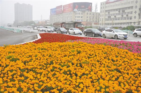 10月12日,周商大道车流顺利通过纬一路导流岛进入商水城区,堵车现象成为历史。周商大道综合升级改造工程宁洛高速出入站口至纬一路段长2.7公里,设计为双向8车道,道路红线宽80米,较之前增加两个车道,目前主路面已基本完工,交通状况得到极大改善。 记者 付永奇 摄