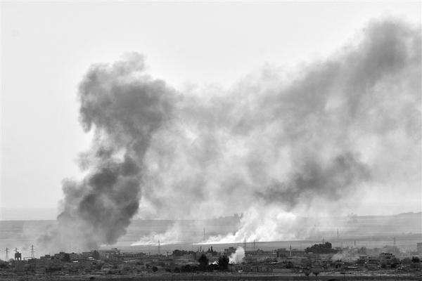 10月12日,烟雾从叙利亚北部边境城镇拉斯艾因升起。土耳其13日称已占领叙利亚北部边境城镇泰勒艾卜耶徳并控制一重要路段,将继续在叙北部向前推进30多公里。另据叙利亚通讯社13日报道,土耳其军队及叙反对派武装当天占领了叙北部拉卡省和东北部哈塞克省多个村镇,其中包括泰勒艾卜耶徳的部分区域和哈塞克省拉斯艾因市周边的多个村庄。新华社发