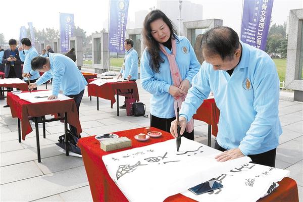 当日,“纪念甲骨文发现120周年·全国甲骨文书法篆刻展”在河南省安阳市中国文字博物馆举行。展览除展出甲骨文书法、篆刻作品外,还邀请书法爱好者在现场进行甲骨文书法创作。