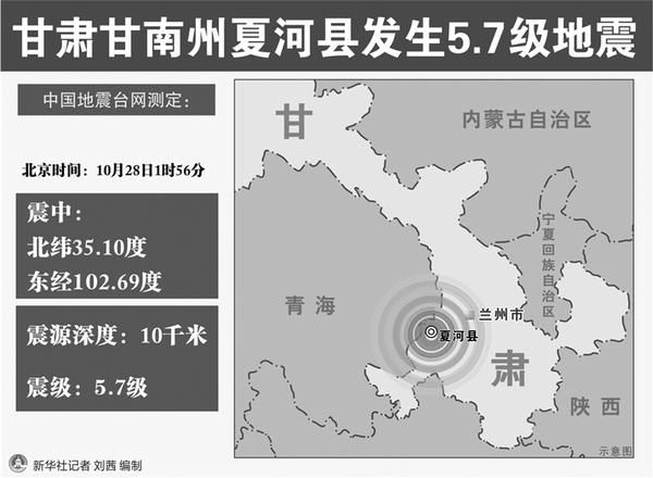 甘肃甘南州夏河县发生5.7级地震