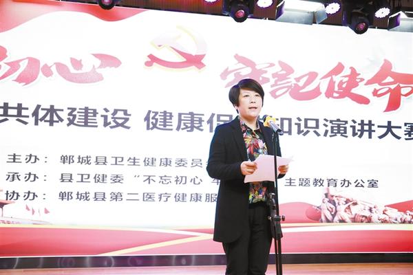本报讯(记者 徐松 通讯员 张洋 文/图)10月25日下午,郸城县卫健委举办郸城县医共体建设、健康促进知识演讲大赛。副县长肖炜,县总工会主席王超,县卫健委党组书记、主任付登霄出席活动并为获奖者颁奖。