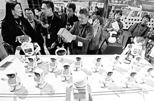 11月21日,采购商在选购深圳市一家机器人生产厂家的儿童教育机器人。11月21日至23日,以“智能、绿色、创新”为主题的2019中国义乌国际智能装备博览会举行,吸引了美国、德国等国家和地区以及全国各地的约500家企业、3万余名中外采购商参展。新华社记者 谭进 摄