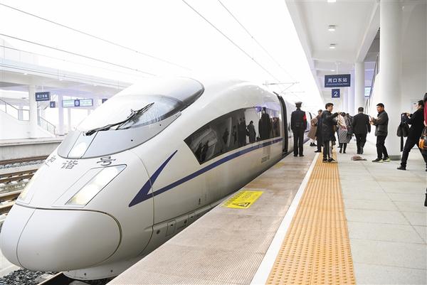 12月1日,郑阜高铁周口东站开通运营,我市群众争相乘坐周口始发的第一列高速动车。记者 王映摄