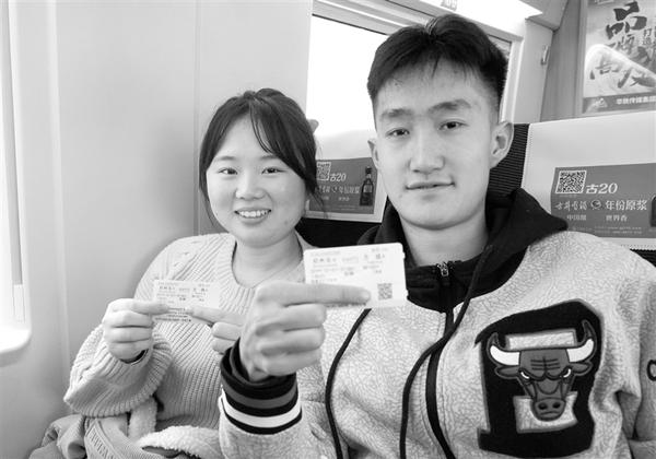 12月1日,乘客在由郑州东站至襄阳东站的G4051次列车上展示车票。