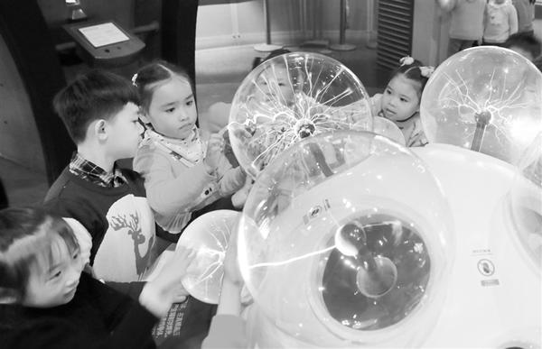 12月3日,小朋友与一组辉光球展品互动。近日,一批新展品陆续亮相上海科技馆,涉及物理学、数学等科学内容,互动探索体验让身在其中的大朋友和小朋友们流连忘返。新华社发