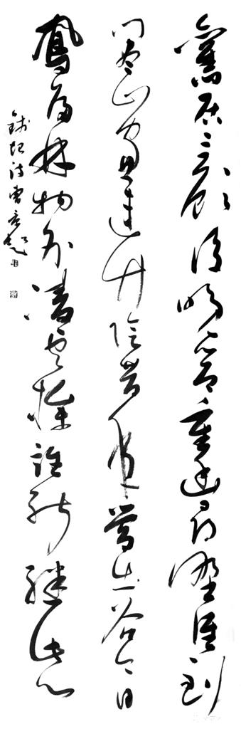 景超君从帖学一派走来,其行草书得益于“二王”、米芾、黄庭坚、张瑞图、王铎等,他对传统的经典碑帖是下过大功夫的。进入文联从事专业之后,视野大开,他的创造活力一下子得到释放,在工作和生活之余,他把所有的精力都用在学习和创作上。作为一个有思想、有胆当、充满激情和艺术天分的书家,他对当代书法的探索与借鉴,投入了相当大的热情,同时又不断从传统的脉络中汲取营养。无论是对现代艺术的把玩,还是对传统形态的掌控,使得他对“流行书风”和传统经典都保持一种开放的心态,既不媚时尚,又不一味沉湎于古风,清晰并丰富着自己的理性思考与判析,同时提升着自己的艺术表现手段。