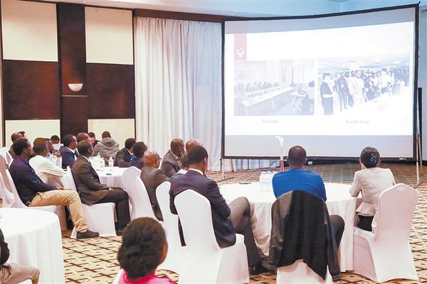 12月4日,在卢旺达首都基加利,与会者在中国援卢培训成果座谈会上观看中国人力资源培训项目展示。卢旺达发展署副署长尼永库鲁4日在卢旺达首都基加利参加中国援卢培训成果座谈会时说,中国为卢旺达提供的人力资源培训“将帮助卢旺达实现国家发展目标”。新华社记发