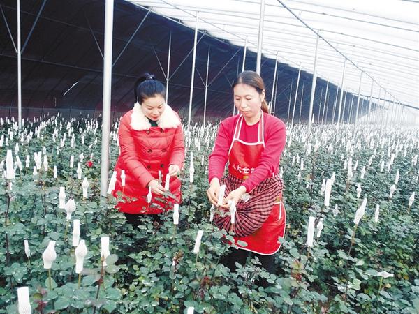 昨日上午,沈丘县北城办事处苏楼村玫瑰生态园里,两名工人正在为大棚玫瑰套泡沫网套。该生态园占地20余亩,有8个保温大棚,是返乡农民工周文朋夫妇的创业项目。据了解,种植大棚玫瑰,市场前景广阔,每亩纯收入1万多元。