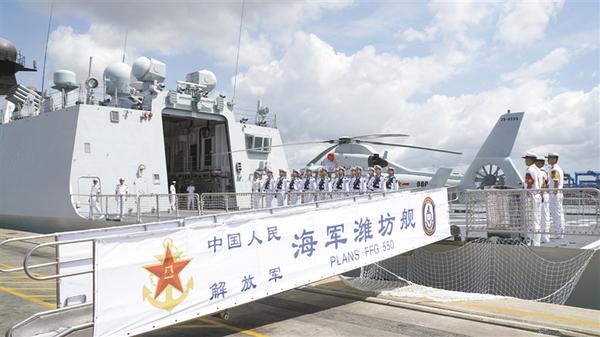 当地时间8日上午,中国海军第33批护航编队潍坊舰抵达肯尼亚蒙巴萨港进行技术停靠。新华社发