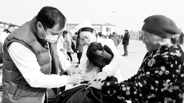 就诊就在家门口,精准扶贫送健康,义诊活动暖人心。12月19日,商水县扶贫办联合县中医院到舒庄乡王一侯村义诊。义诊公益活动的开展,为村民普及了健康知识,增强了留守老人和广大贫困群众的自我保健意识,深受全村群众的好评。图为骨科医护人员正在给村民做针灸理疗。