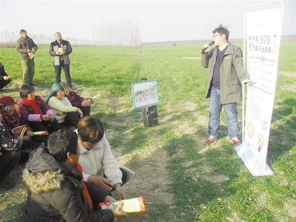 12月19日,商水县魏集镇人大代表和应邀而来的农业科技专家组联合设立科技咨询台,回答农民在冬季管理小麦中遇到的各种问题。图为咨询现场。