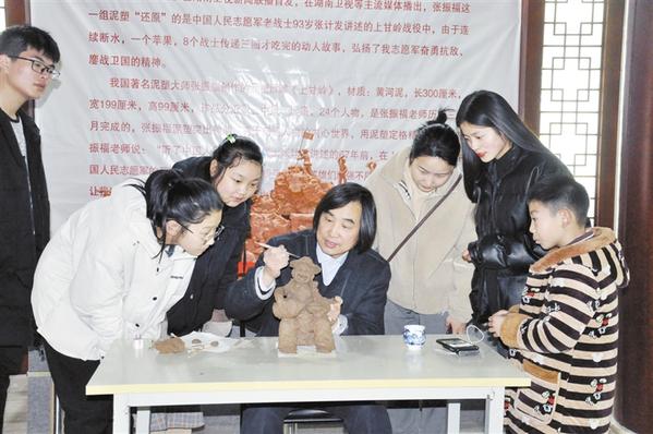 12月30日,记者在市博物馆看到,艺术家张振福正在“烽火年代”钧瓷泥塑艺术展现场进行创作,引来众多观众围观。据悉,该展览将持续到2020年1月中旬。记者 徐松 摄