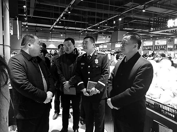 胡国胜一行首先来到位于该县行政路西段的万果园超市。在超市负责人的陪同下,他们详细察看超市安全通道、安全警示、监控室、消防水池等安全设施设备,询问相关人员应对发生突发事件的流程,并在服装区随机抽查工作人员对消防器材的了解使用情况。胡国胜指出,节日期间,超市流动人员增多,要始终把安全放在首要位置,加强对员工的安全培训,全面落实安全生产各项制度和防范措施。