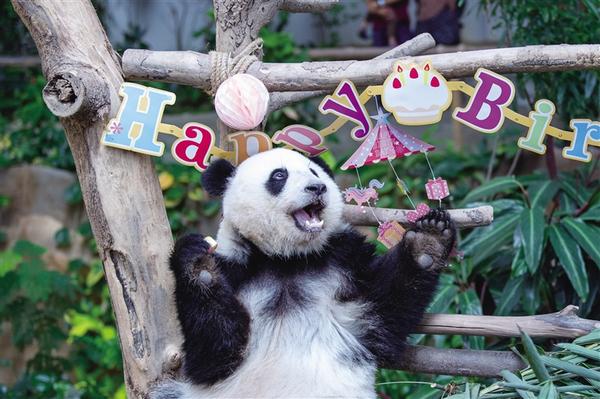 ▲1月14日,在马来西亚吉隆坡附近的马来西亚国家动物园,大熊猫宝宝“谊谊”庆祝生日。