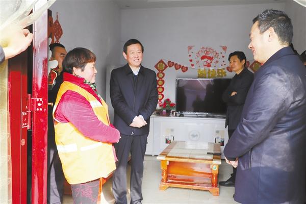 1月18日,市教体局工作人员来到在扶贫联系点——项城市南顿镇八联行政村开展慰问活动,他们来到村民家中给村民送去了米、油、火腿肠等慰问品,并向村民致以新春的问候,受到村民一致好评。图为市教体局党组书记张建梁在村民邵美灵家中慰问。 安稳摄