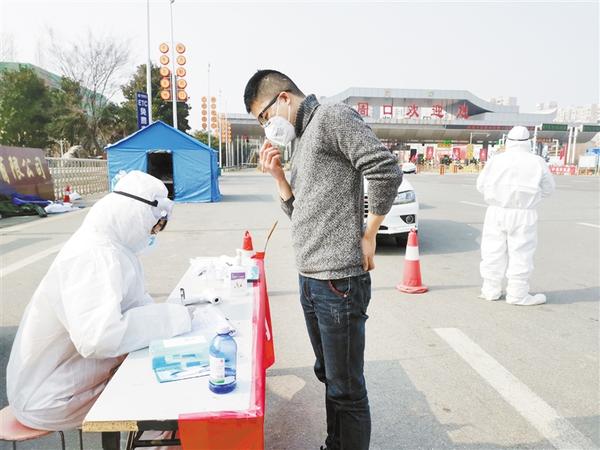 1月28日上午12时许,记者来到宁洛高速周口站。由于每天从该站下站的车辆较多,这里设置了两个疫情防控检测点,由商水县人合医院、商水县人民医院的医生以及商水县疾控中心的工作人员正在负责对进周车上人员进行体温检测。