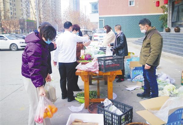 新型冠状病毒疫情防控以来,生鲜果蔬、米面粮油等生活必需品的供应成为市民的关注点。近日来,不少市民发现,许多餐饮企业通过设置便民菜摊、蔬菜线上外卖等多种形式,助力蔬菜供应,成了市民家门口的便民“菜篮子”。 1月30日上午,庆丰路一家饭店在店前摆满了青菜、水果、鱼等食材,供市民选购。据饭店工作人员说:“我们把为春节期间预备下的多余食材拿出来,平价售卖,避免食材浪费,也方便了周边社区居民。” 图为市民在庆丰路一饭店门前选购菜品。 记者 孙安平 摄