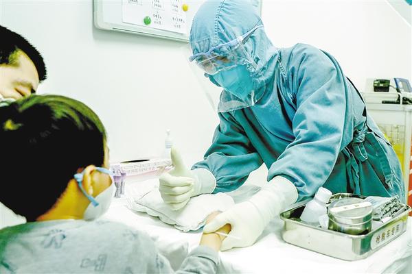 1月31日,发热门诊护士在为一名刚刚抽完血的小患者“点赞”。