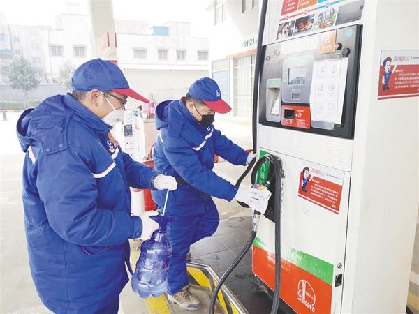 连日来,中国石化周口分公司要求各加油站24小时全方位、无死角进行消毒,并设立“微型”防疫站,为有需要的顾客提供测量体温等服务,全力做好疫情防控工作。王海霞 孙晨豪 摄