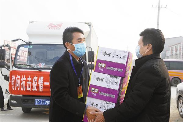 “知道大家一线防控值勤辛苦,在卡点上吃饭困难,为大家送点食品,也算是作为一名人大代表为抗击疫情尽的一点点心意吧!”2月2日下午,示范区许湾乡张埠口行政村党支部书记、区人大代表张站国带着他采购来的价值5万元的火腿肠、方便面、饼干,赠送给了示范区一线防控工作人员(图3)。