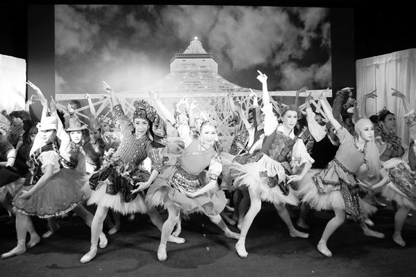 2月18日,在日本东京,松山芭蕾舞团的演员在东京塔内表演节目,为中国抗击疫情助威加油。
