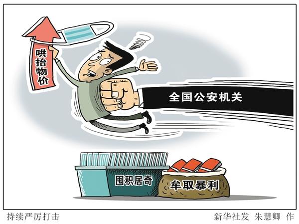 记者从公安部获悉,新冠肺炎疫情发生以来,全国公安机关持续严厉打击人民群众反映强烈的哄抬物价、囤积居奇、牟取暴利等扰乱市场秩序犯罪活动。公安部联合市场监管总局下发文件,指导各地加强疫情防控期间价格行政执法与刑事司法衔接,从严从快惩处防护用品和民生商品乱涨价行为,切实保障疫情防控工作顺利开展。新华社发