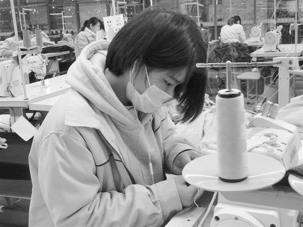 3月8日,在商水县阿尔本制衣有限公司,员工正在生产春装。该县有序抓实带贫企业、扶贫车间的复工复产工作,做到防疫脱贫两不误。截至目前,该县60个带贫企业、63个扶贫车间已吸纳贫困劳动力7000多人。